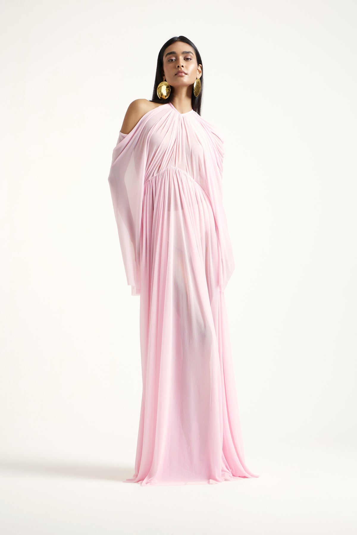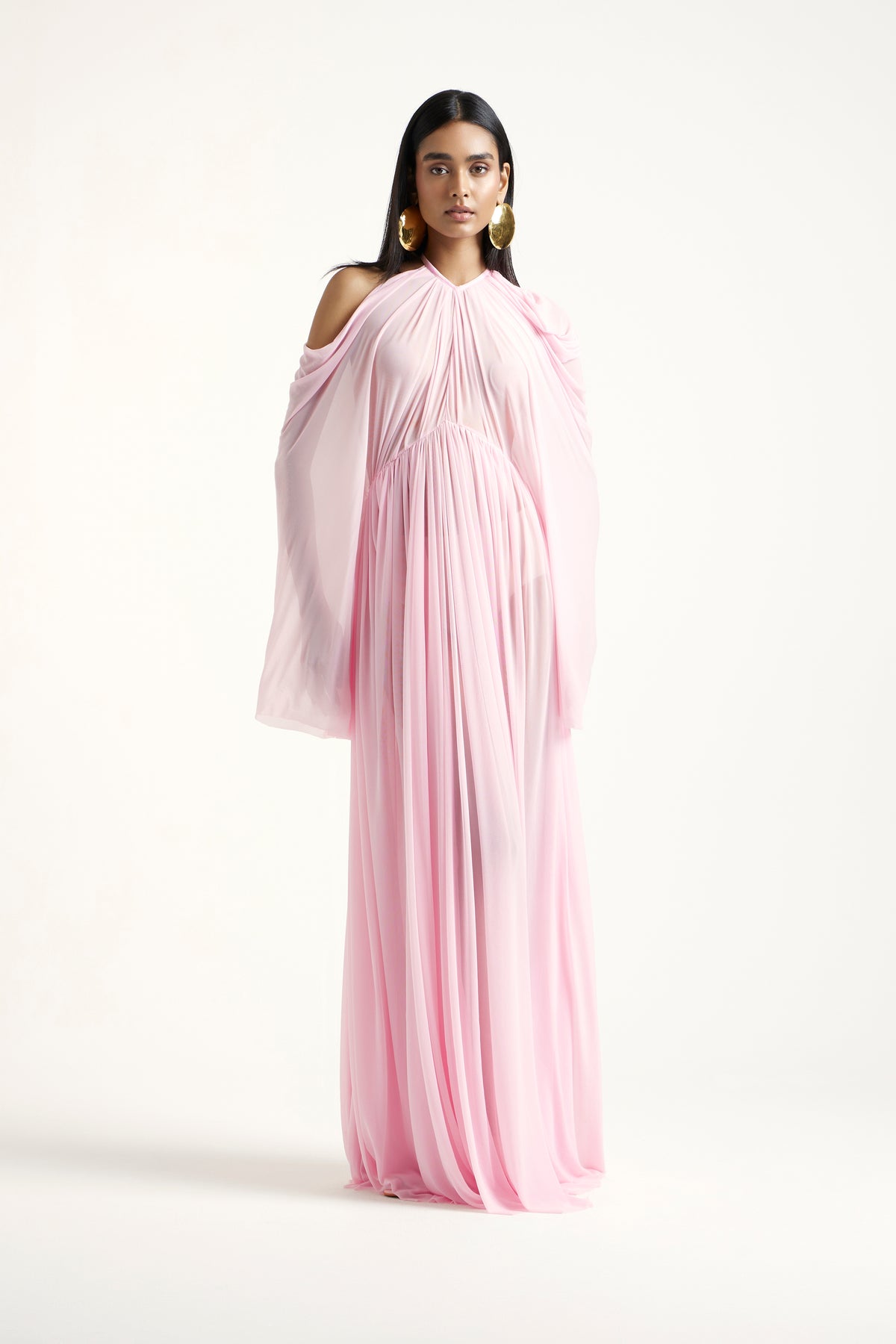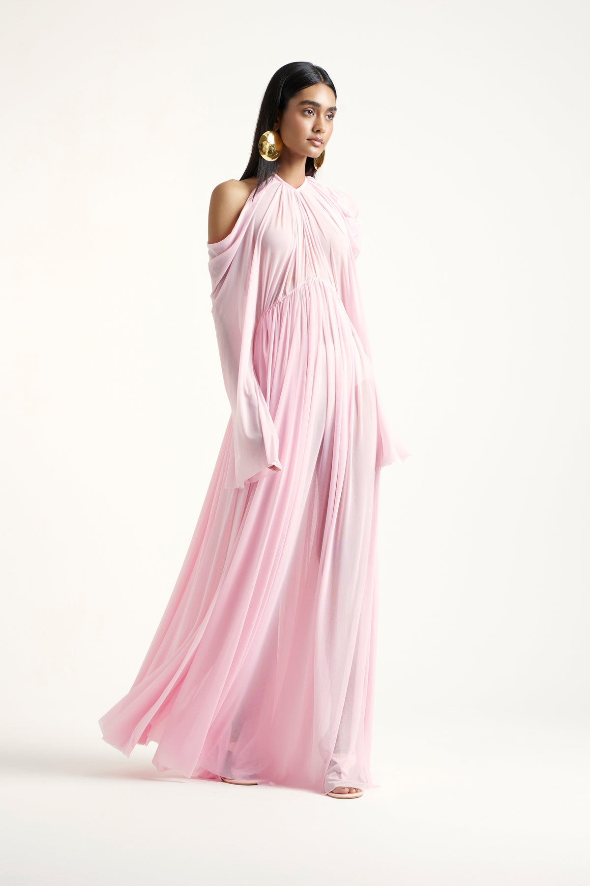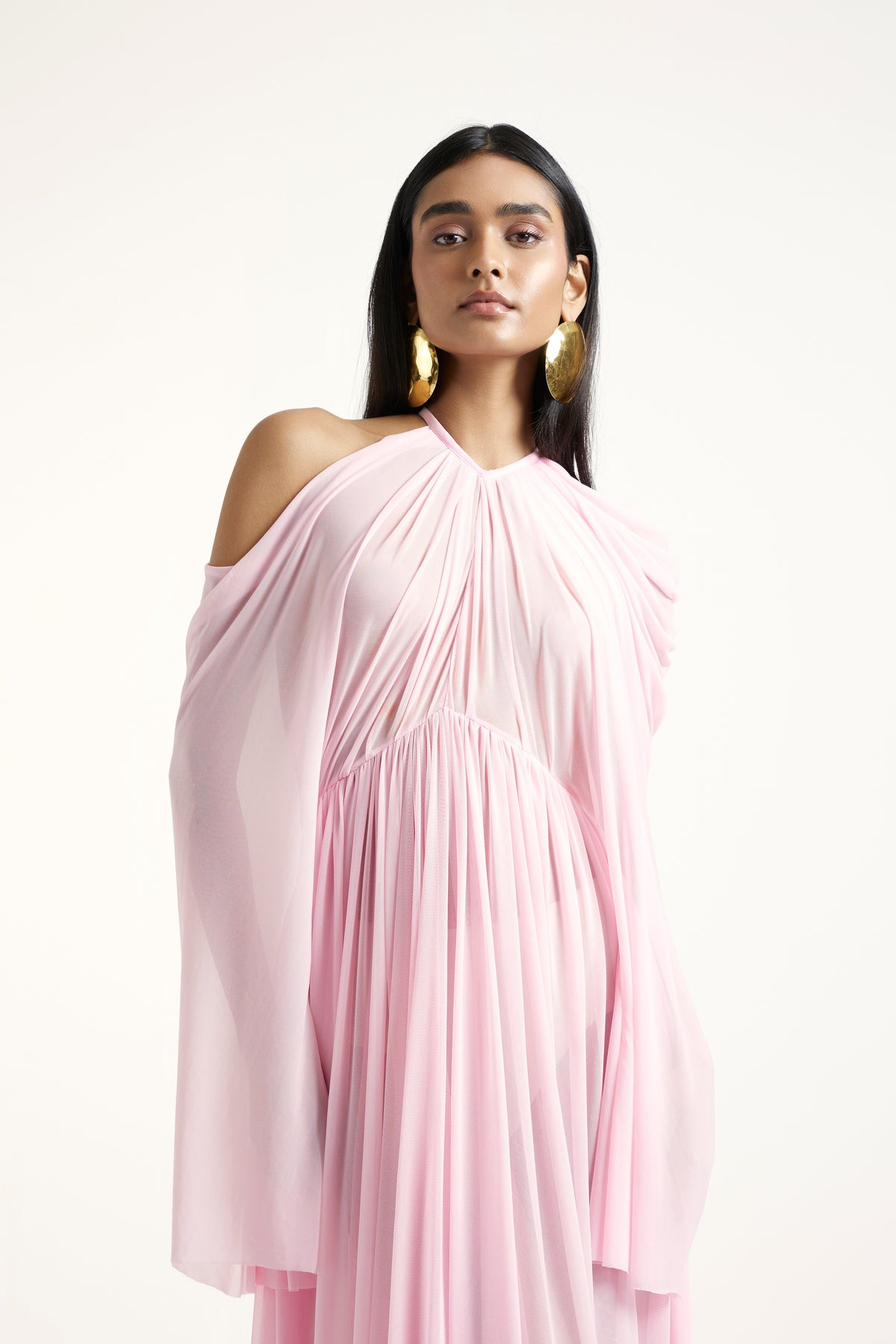 A dreamy noa pink dress constructed entirely from delicate net, creating a soft, airy silhouette with a touch of romance. The lightweight fabric adds graceful movement, while the pastel hue enhances its feminine charm. A beautiful choice for spring and summer affairs, offering both elegance and ease.