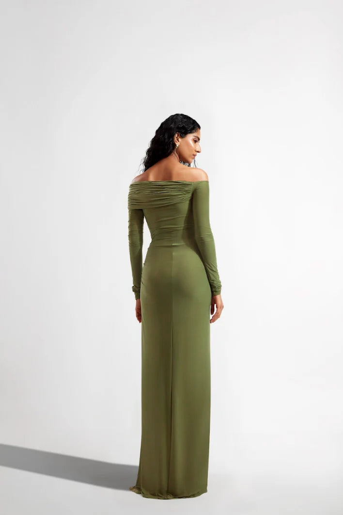 Off shoulder Lycra Draped dress