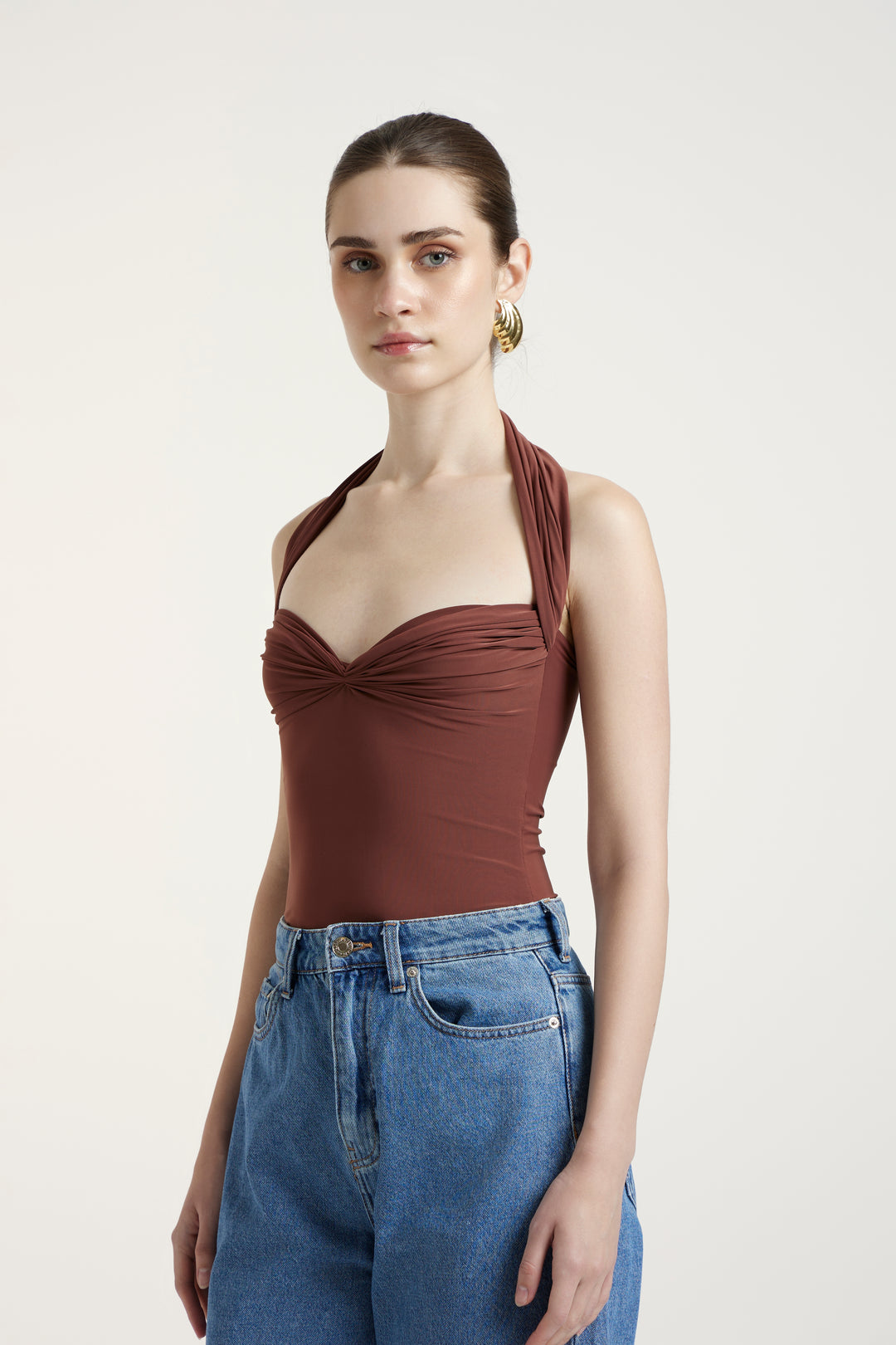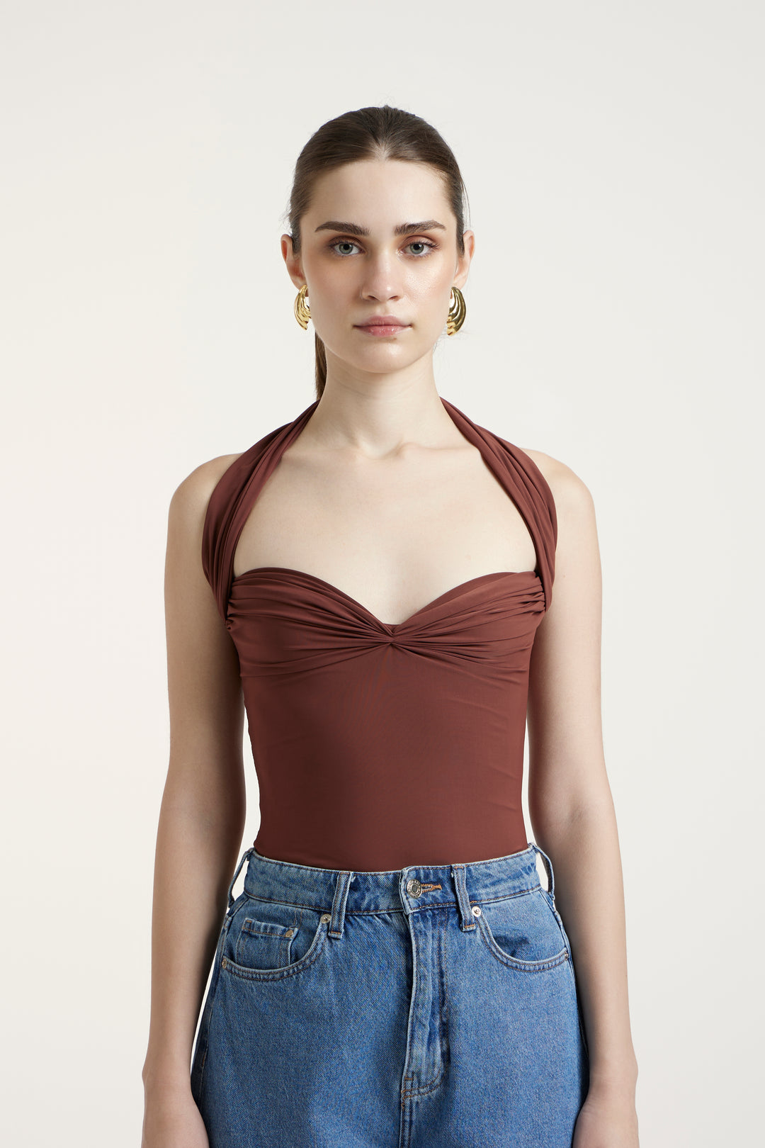 A strapless statement top with a ruched bodice and subtle sweetheart neckline. Crafted in luxe Malai lycra, its sculptural silhouette makes it a versatile piece for both elevated evenings and modern day dressing.