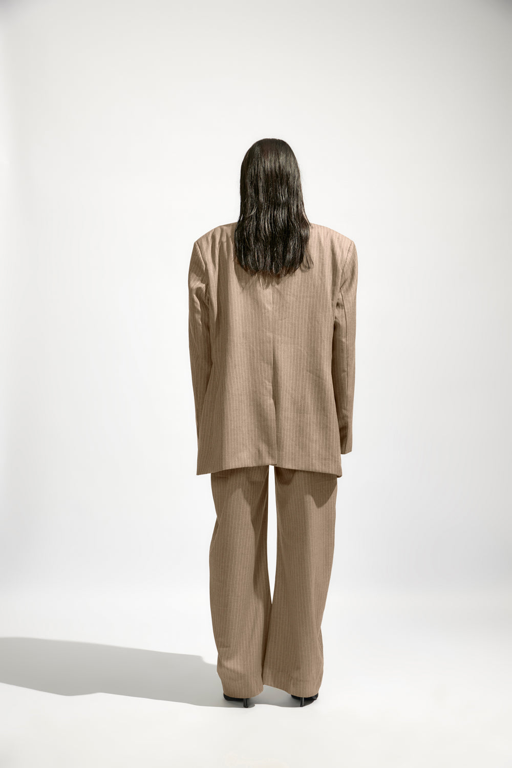 Make a bold fashion statement with this versatile 3-piece set, combining sophistication with contemporary flair. The oversized blazer exudes confidence and elegance, offering a relaxed yet polished silhouette. Paired with tailored pants, the ensemble exudes professionalism and style, perfect for both formal occasions and casual outings. The addition of a chic crop top adds a touch of modernity and femininity, effortlessly transitioning the outfit from day to night.