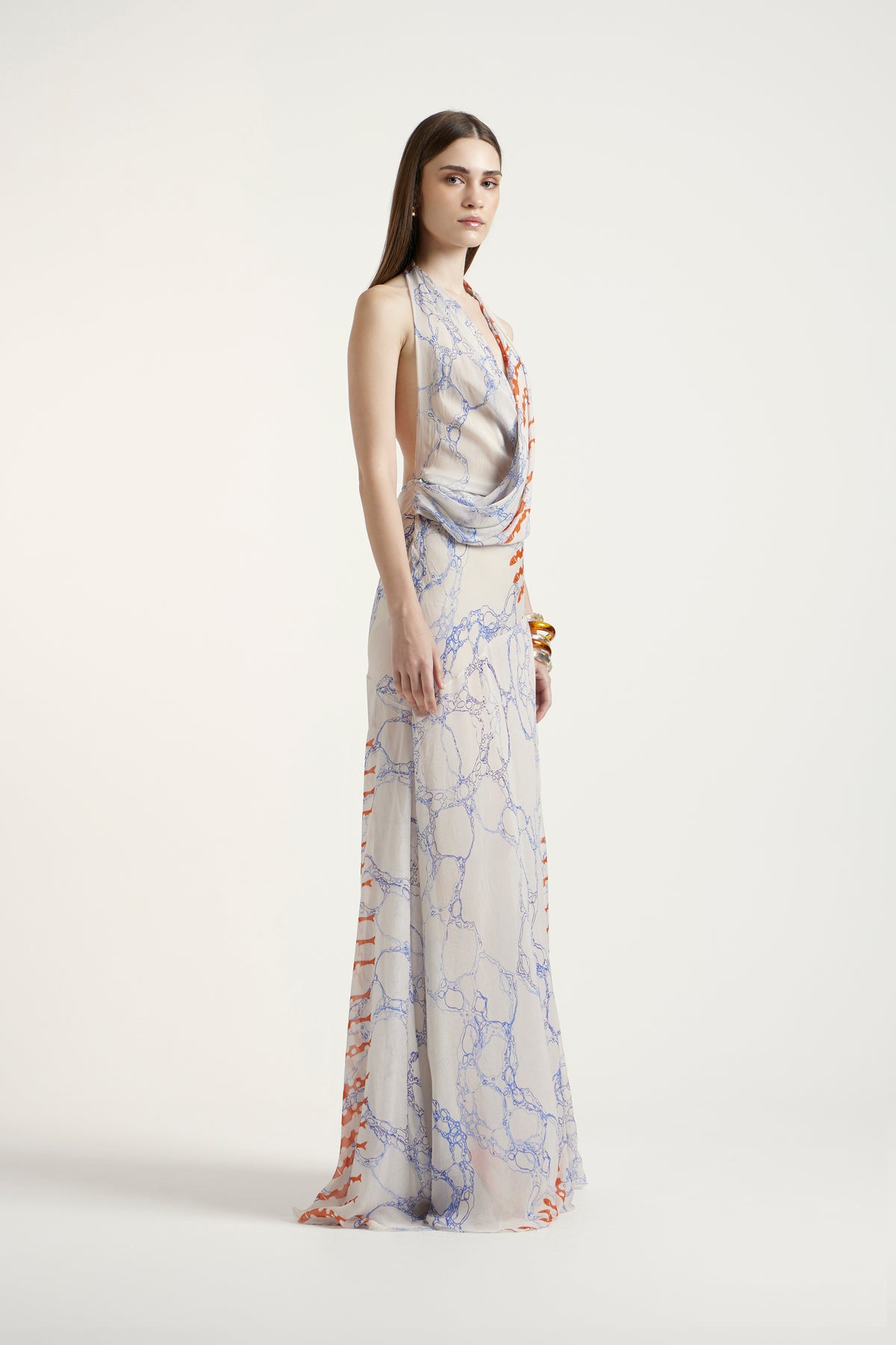 Rendered in pure chiffon, the Siena dress in gold offers a luminous, floating silhouette that exudes understated glamour. The chiffon’s natural drape enhances the softness of the design, making it perfect for formal evenings and celebratory moments where effortless elegance is key.