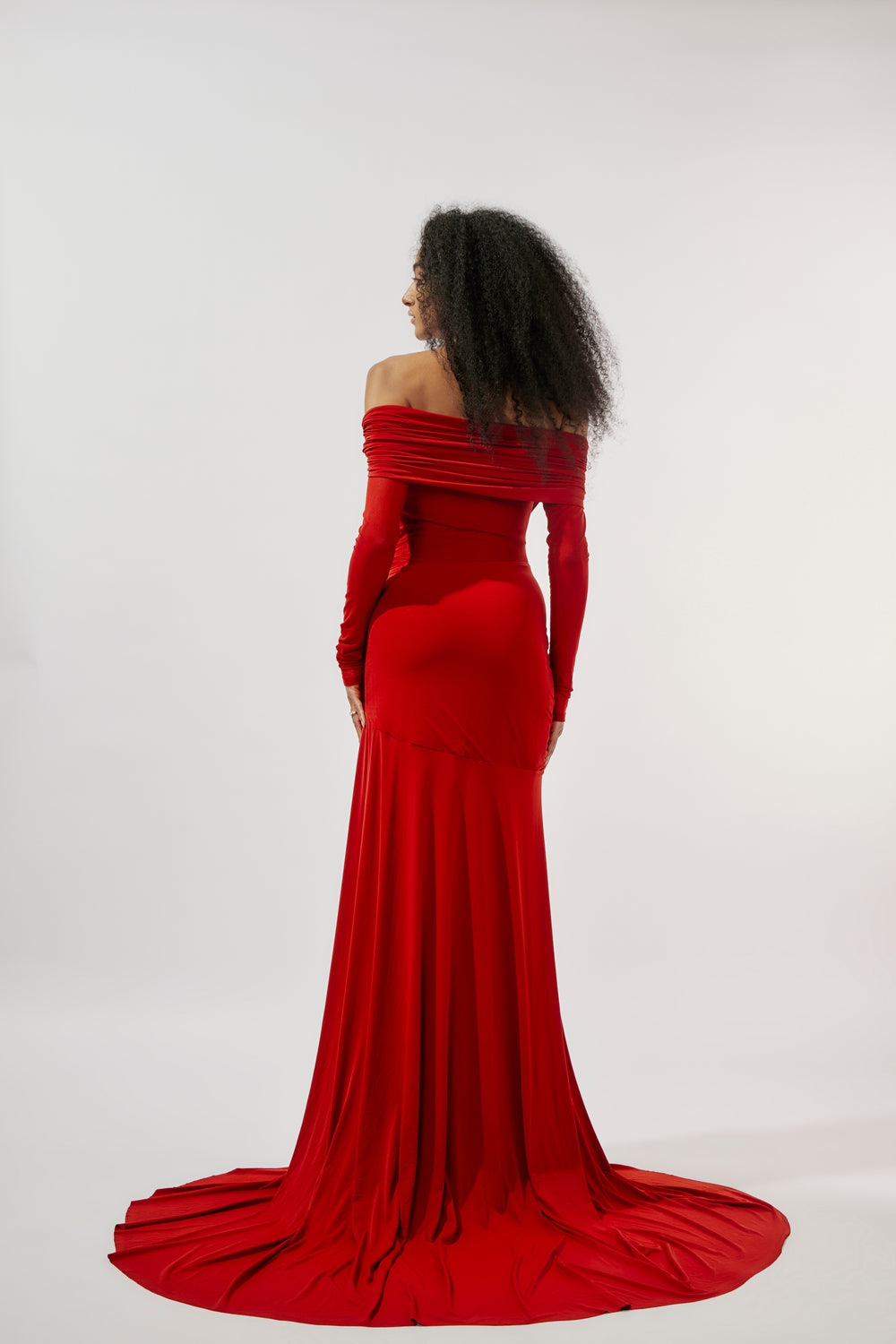 Embrace the essence of sophistication in this stunning malai lycra and mesh gown. The beautifully draped top exudes an air of timeless elegance, while the mesh detailing adds a touch of modern flair. With a daring high thigh slit, this gown strikes the perfect balance between allure and refinement. Whether you're gracing a red carpet event or attending a lavish gala, this gown is sure to turn heads and leave a lasting impression of grace and confidence.