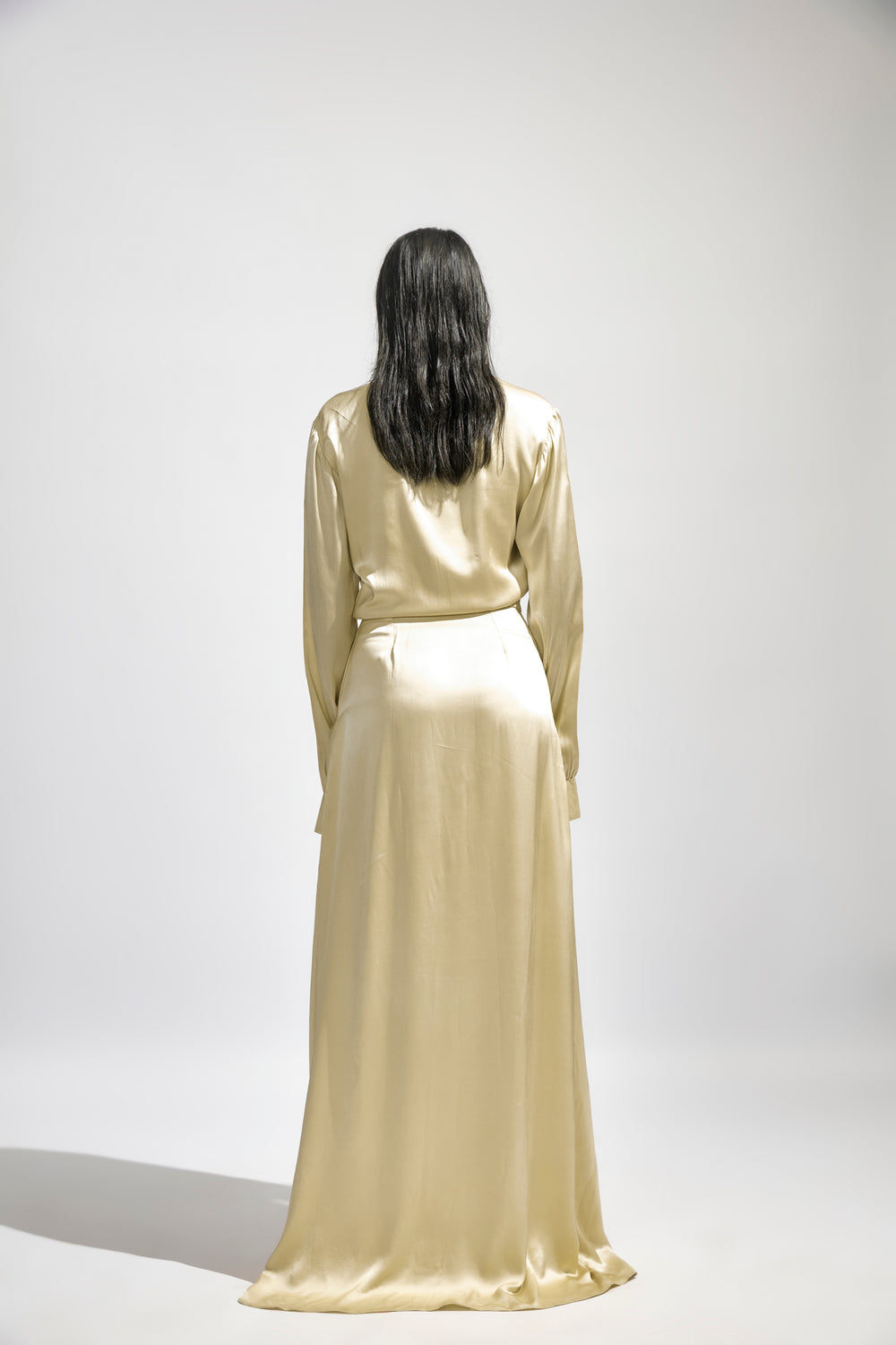 Elevate your wardrobe with this stylish full-sleeve shirt dress, offering a versatile and modern look. The high slit adds an alluring touch, balancing sophistication with a hint of allure, perfect for transitioning from day to night with ease. Whether for a casual outing or a formal event, this dress promises to make a statement with its understated elegance and on-trend design.