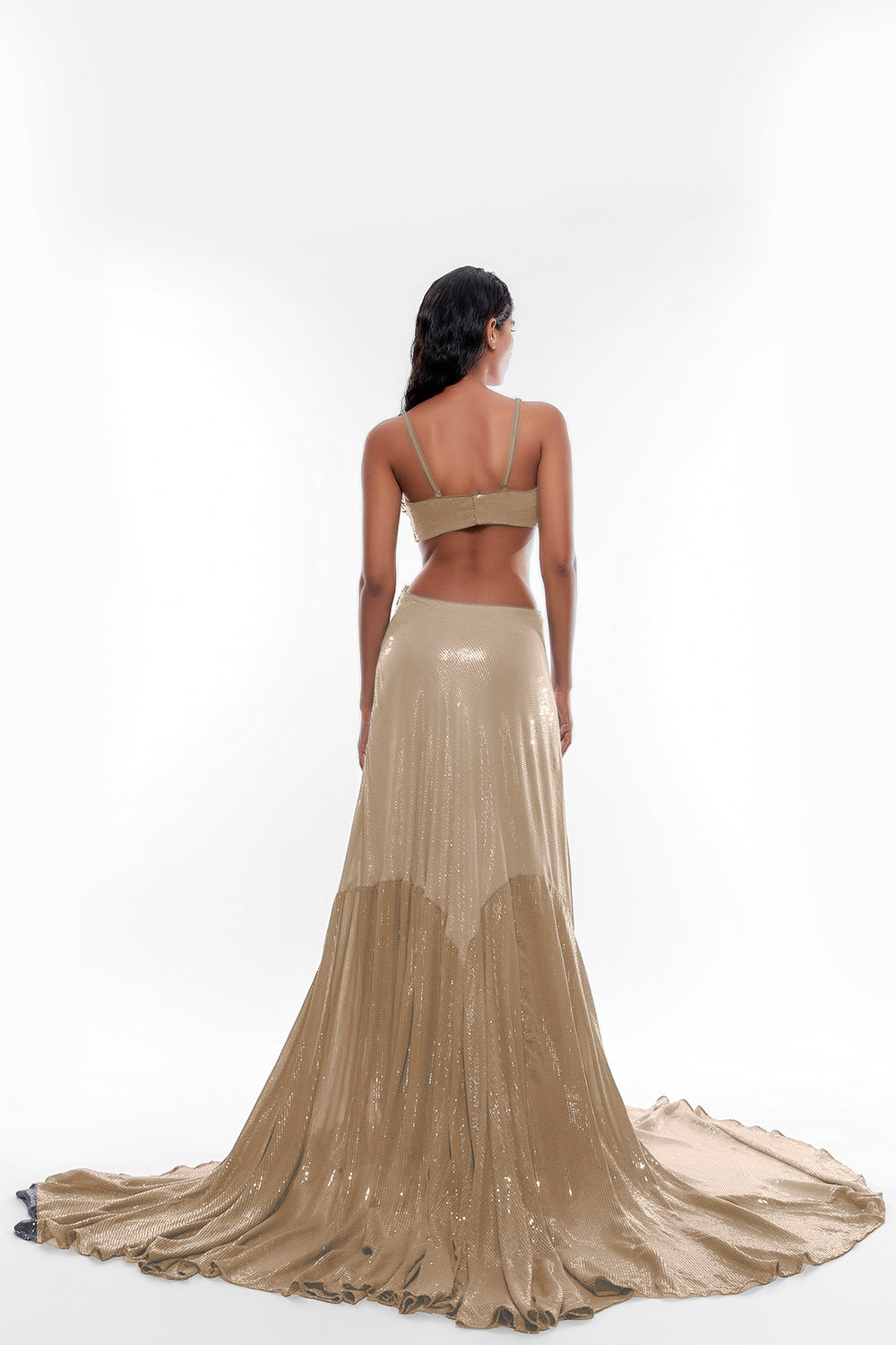Sequin Fitted Dress with a High Low panel detailing